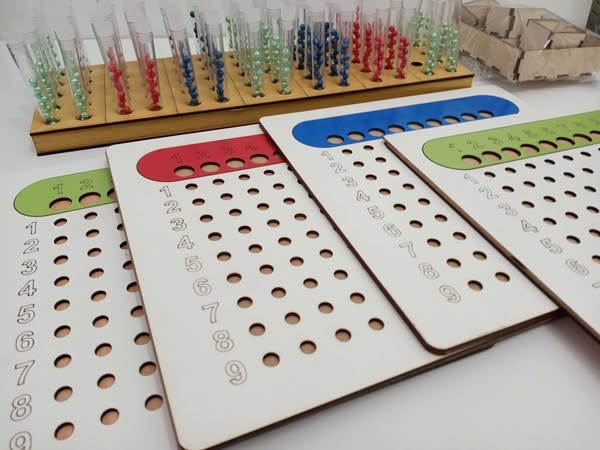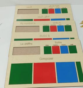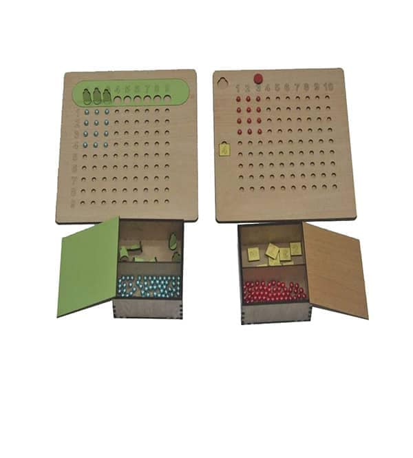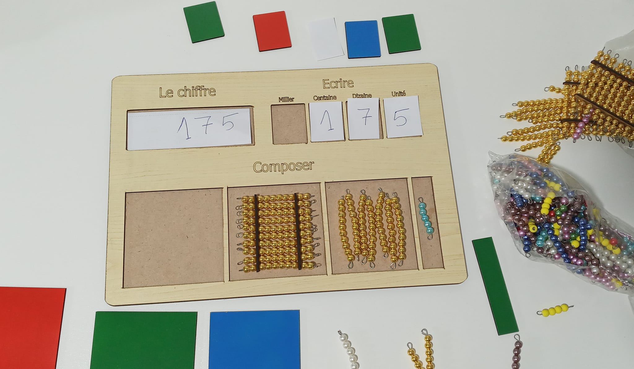 La boîte des perles permet de travailler de nombreuses activités Montessori de mathématiques comme la numération, la multiplication, etc.
