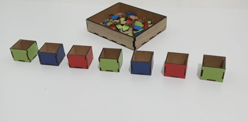• 2 cube de 1 000 perles dorées + 9 cubes en bois et 10 plaquettes de cent en bois tracée